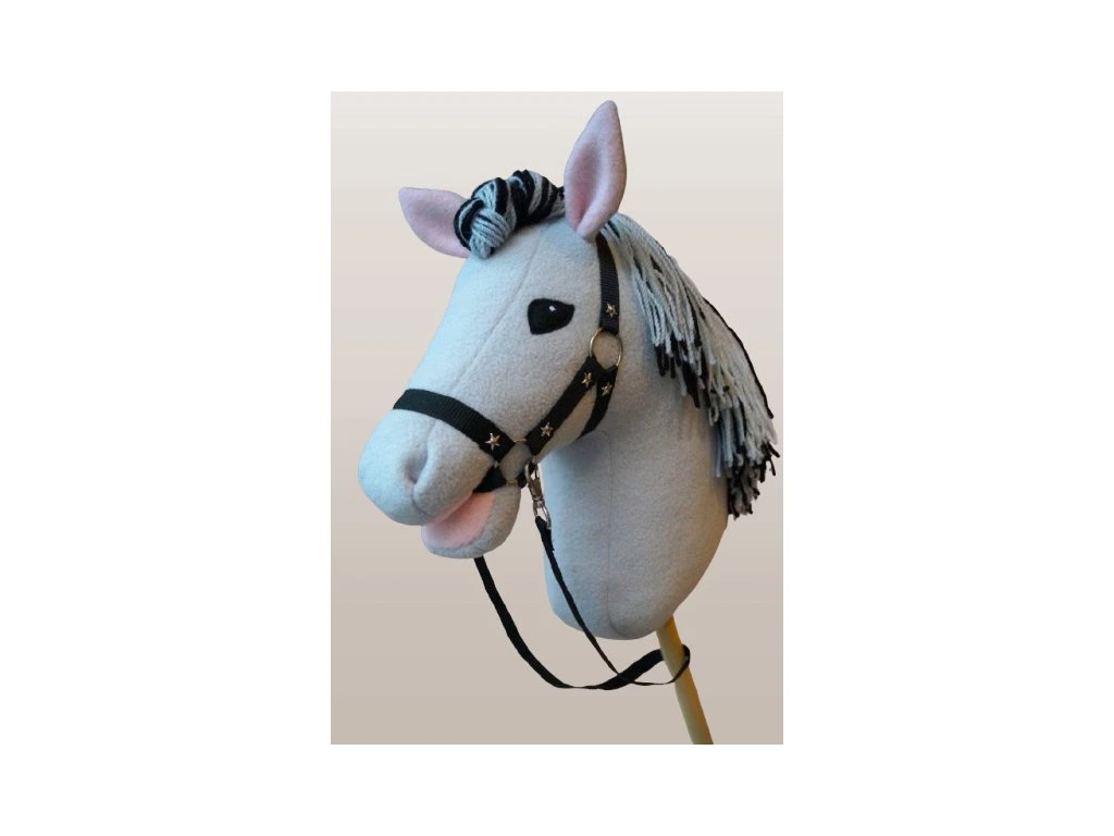 Kolekcia hobbyhorsov s originálnym elegantným účesom a zdobeným popruhom.